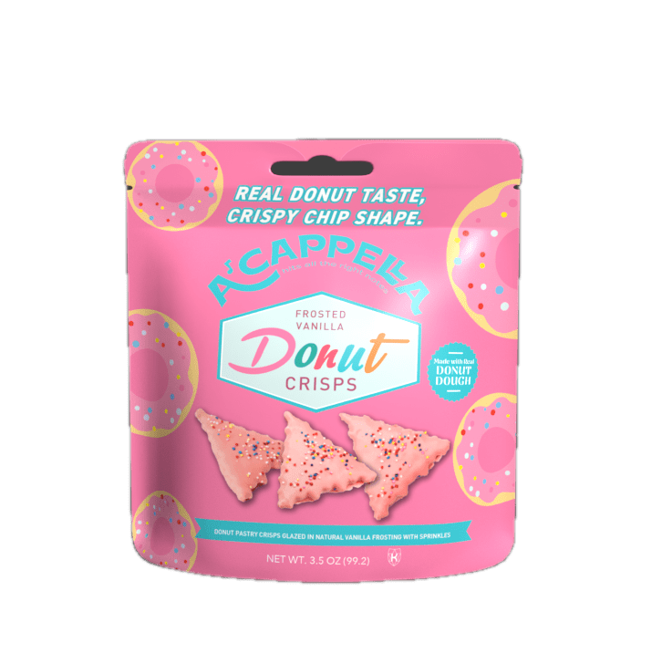 Donut Crisps capture everything you love about donuts in a delightfully crispy bite! Crispy real donut dough centers are glazed in an all natural rich pink vanilla frosting and topped with colorful sprinkles. Grab a handful and make every time donut time.